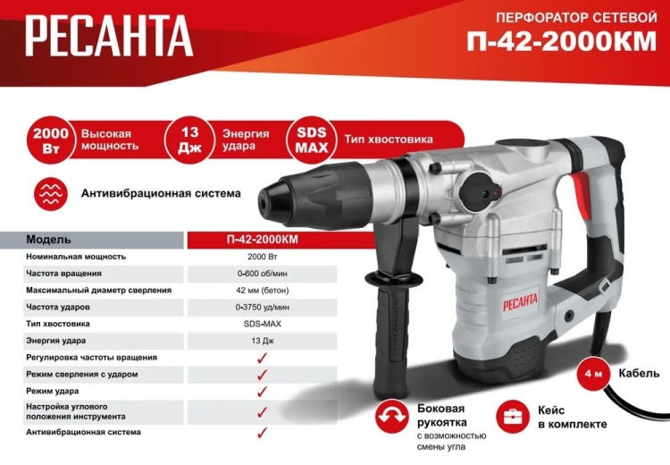 Перфоратор П-42-2000КМ SDS-Max Ресанта 75/3/13 124433678